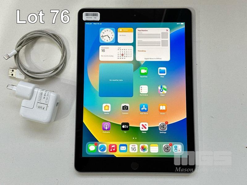 APPLE iPAD 6TH GEN, 32GB, Wi-Fi, SPACE GREY, MODEL MR7F2X/A, A1893 WITH CABLE & CHARGER (NOTE: MINOR SCRATCHES ON SCREEN) S/N:DMPXDJP6JF8J