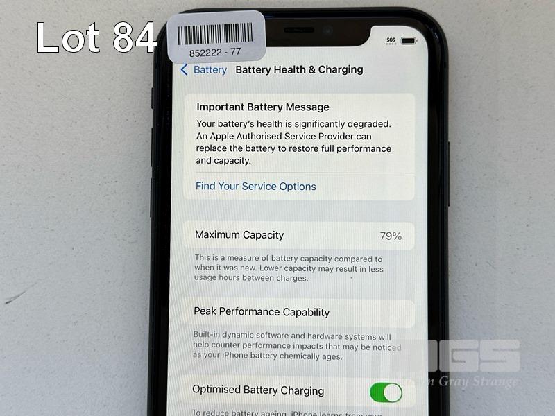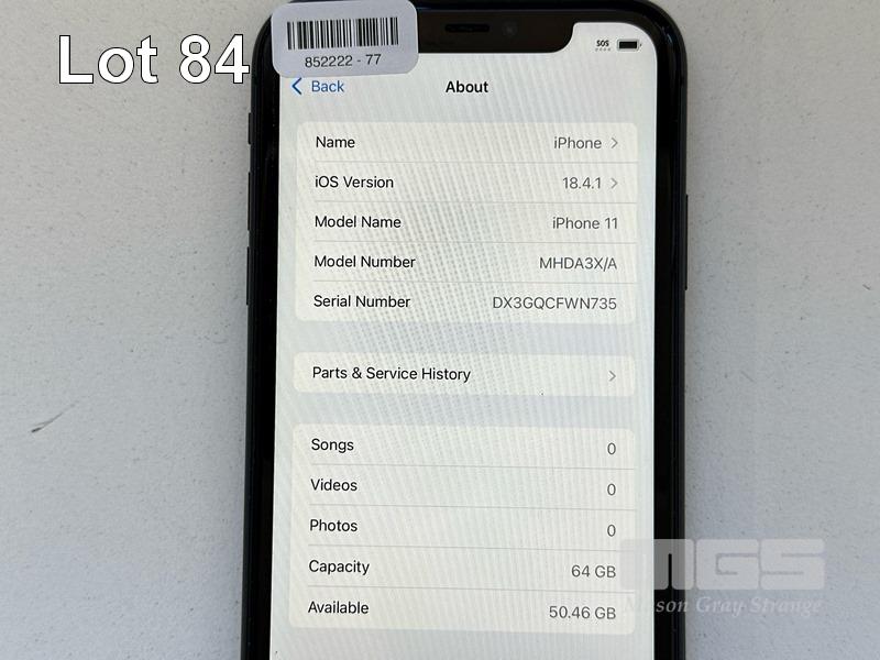 APPLE iPHONE 11, 64GB, MODEL MHDA3X/A, A2221, BLACK, BATTERY HEALTH 79% (NO CABLE, NO CHARGER) (NOTE: BATTERY SERVICE MESSAGE) S/N:DX3GQCFWN735