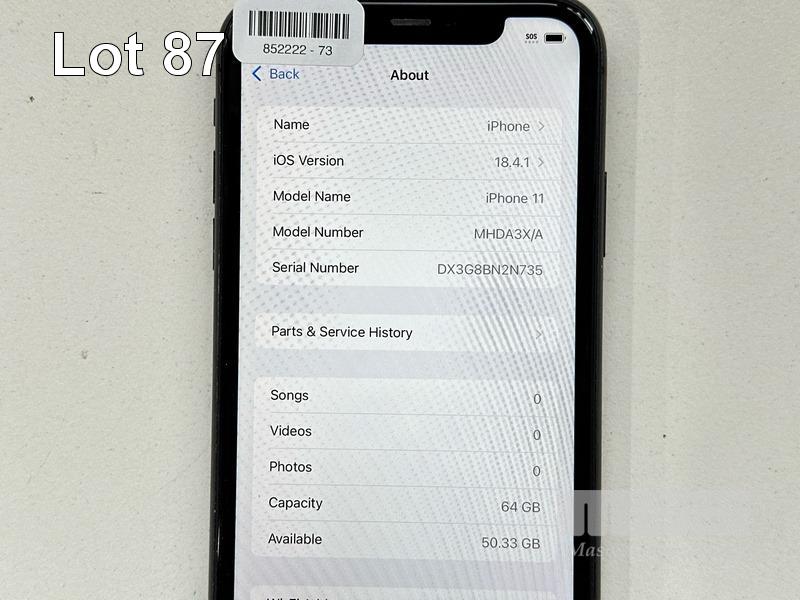 APPLE iPHONE 11, 64GB, MODEL MHDA3X/A, A2221, BLACK, BATTERY HEALTH 79% (NO CABLE, NO CHARGER) (NOTE: BATTERY SERVICE MESSAGE, MINOR SCRATCHES ON SCREEN) S/N:DX3G8BN2N735