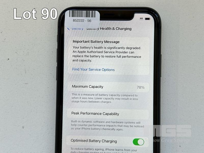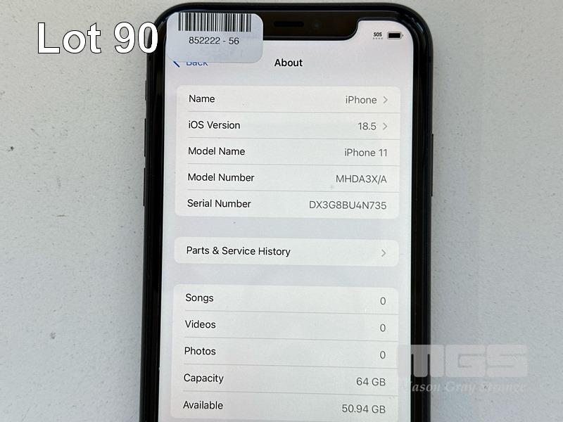 APPLE iPHONE 11, 64GB, MODEL MHDA3X/A, A2221, BLACK, BATTERY HEALTH 78% (NO CABLE, NO CHARGER) (NOTE: BATTERY SERVICE MESSAGE) S/N:DX3G8BU4N735