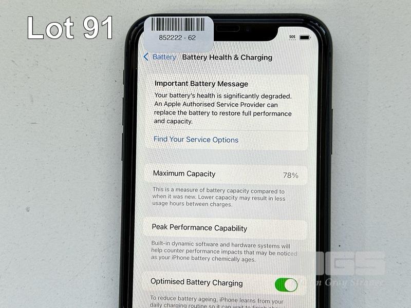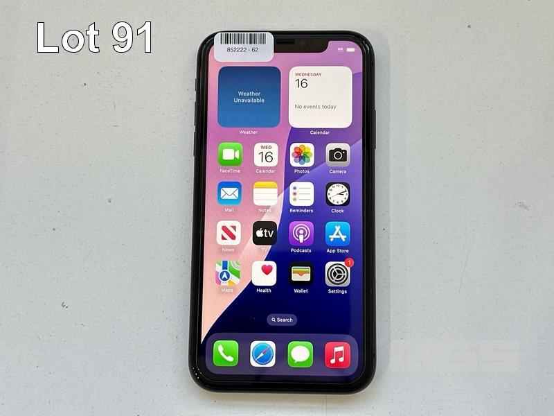 APPLE iPHONE 11, 64GB, MODEL MHDA3X/A, A2221, BLACK, BATTERY HEALTH 78% (NO CABLE, NO CHARGER) (NOTE: BATTERY SERVICE MESSAGE) S/N:DX3H3G2EN735