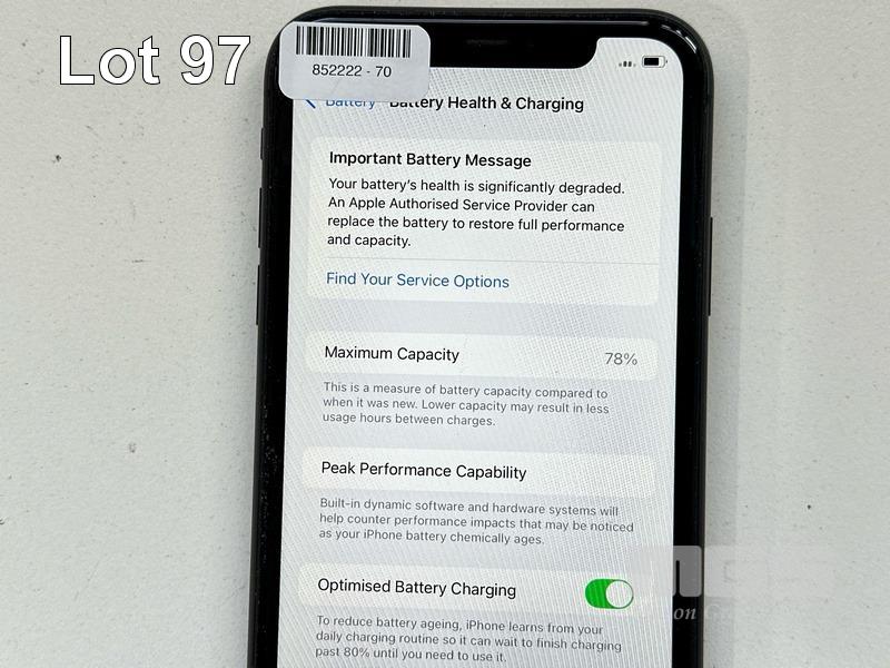 APPLE iPHONE 11, 64GB, MODEL MHDA3X/A, A2221, BLACK, BATTERY HEALTH 78% (NO CABLE, NO CHARGER) (NOTE: BATTERY SERVICE MESSAGE, MINOR SCRATCHES ON SCREEN) S/N:DX4G5KYKN735