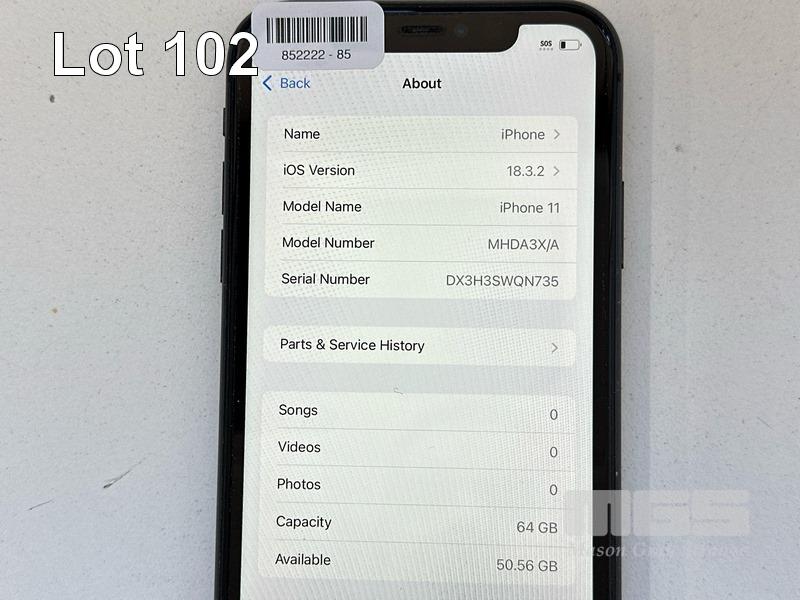 APPLE iPHONE 11, 64GB, MODEL MHDA3X/A, A2221, BLACK, BATTERY HEALTH 78% (NO CABLE, NO CHARGER) (NOTE: BATTERY SERVICE MESSAGE) S/N:DX3H3SWQN735