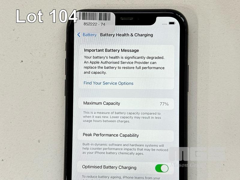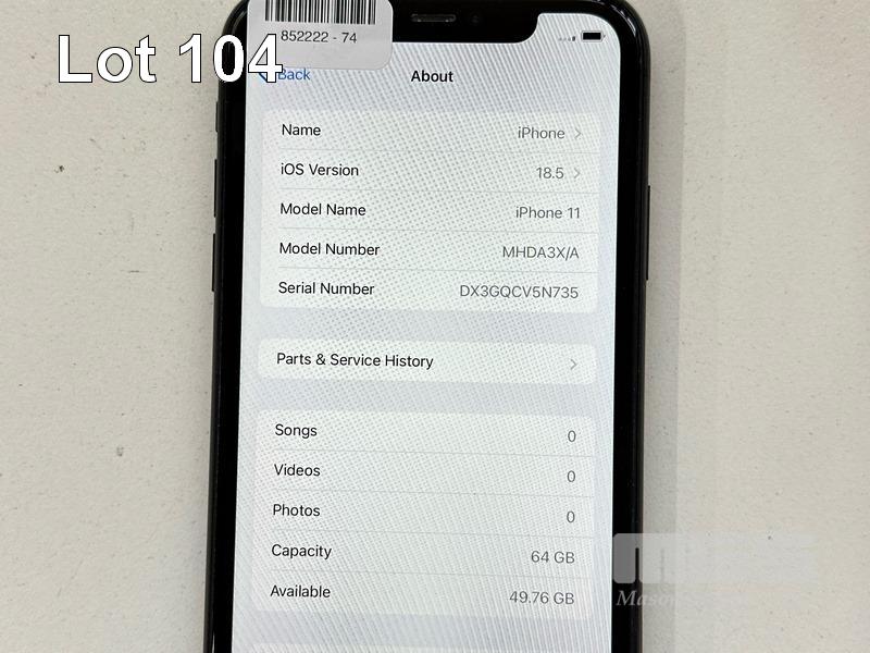 APPLE iPHONE 11, 64GB, MODEL MHDA3X/A, A2221, BLACK, BATTERY HEALTH 77% (NO CABLE, NO CHARGER) (NOTE: BATTERY SERVICE MESSAGE, MINOR SCRATCHES ON SCREEN) S/N:DX3GQCV5N735