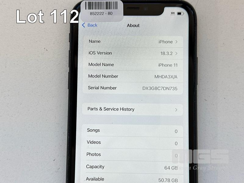APPLE iPHONE 11, 64GB, MODEL MHDA3X/A, A2221, BLACK, BATTERY HEALTH 76% (NO CABLE, NO CHARGER) (NOTE: BATTERY SERVICE MESSAGE) S/N:DX3G8C7DN735
