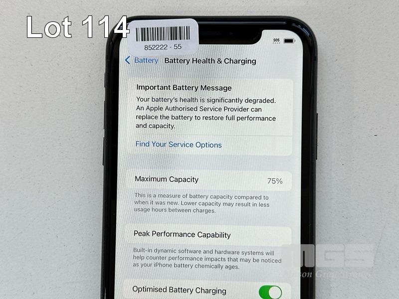 APPLE iPHONE 11, 64GB, MODEL MHDA3X/A, A2221, BLACK, BATTERY HEALTH 75% (NO CABLE, NO CHARGER) (NOTE: BATTERY SERVICE MESSAGE) S/N:DX4GN75DN735