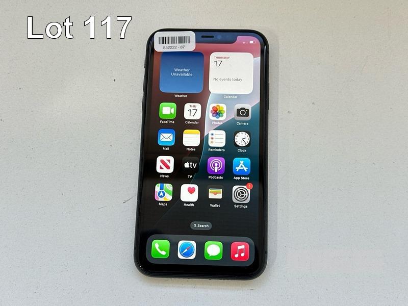 APPLE iPHONE 11, 64GB, MODEL MHDA3X/A, A2221, BLACK, BATTERY HEALTH 75% (NO CABLE, NO CHARGER) (NOTE: BATTERY SERVICE MESSAGE, MINOR SCRATCHES ON SCREEN) S/N:DX3H3SLSN735