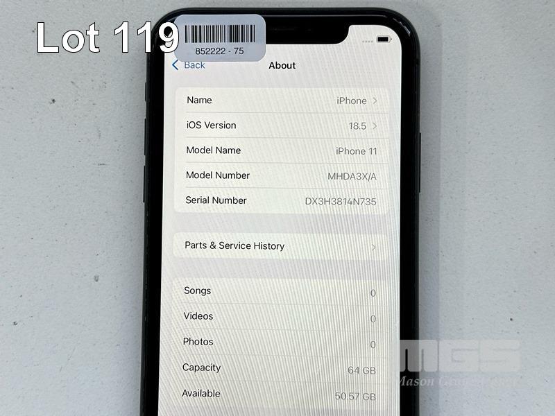 APPLE iPHONE 11, 64GB, MODEL MHDA3X/A, A2221, BLACK, BATTERY HEALTH 73% (NO CABLE, NO CHARGER) (NOTE: BATTERY SERVICE MESSAGE, MINOR SCRATCHES ON SCREEN) S/N:DX3H3814N735