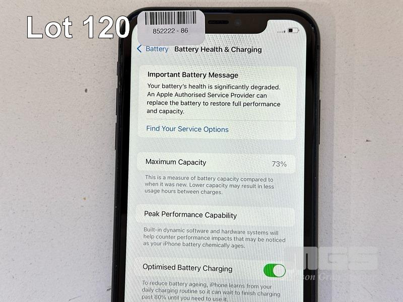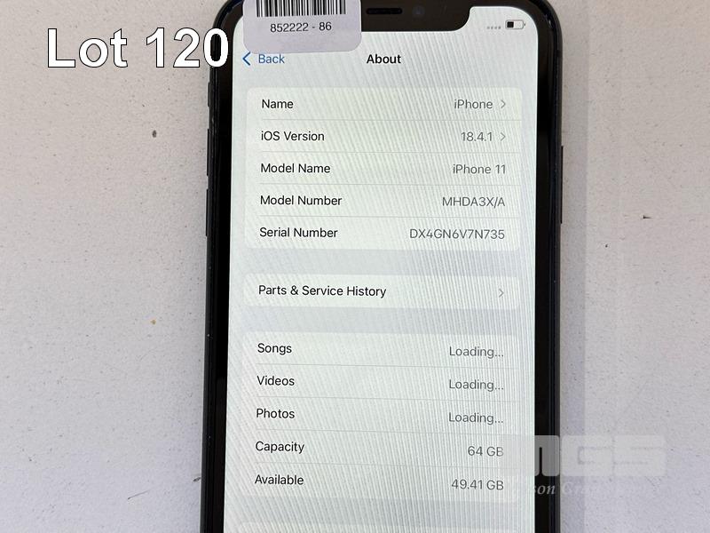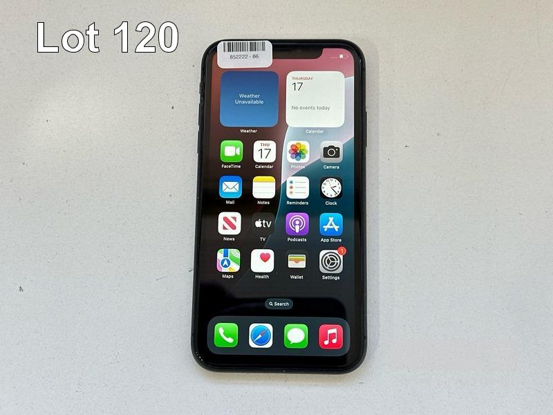 APPLE iPHONE 11, 64GB, MODEL MHDA3X/A, A2221, BLACK, BATTERY HEALTH 73% (NO CABLE, NO CHARGER) (NOTE: BATTERY SERVICE MESSAGE, MINOR SCRATCHES ON SCREEN) S/N:DX4GN6V7N735