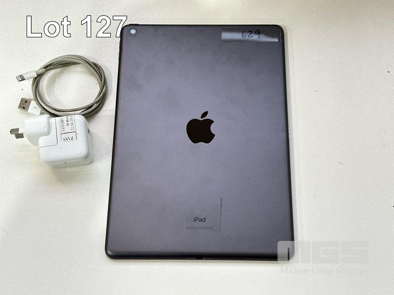 APPLE iPAD 7TH GEN, 32GB, Wi-Fi, SPACE GREY, MODEL MW742X/A, A2197 WITH CABLE & CHARGER (NOTE: LINE ON SCREEN, MINOR SCRATCHES ON SCREEN) S/N:DMPZ7RUEMF3M