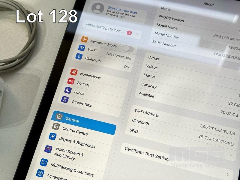 APPLE iPAD 7TH GEN, 32GB, Wi-Fi, SPACE GREY, MODEL MW742X/A, A2197 WITH CABLE & CHARGER (NOTE: SCREEN BLEMISHES, MINOR SCRATCHES ON SCREEN) S/N:DMQZK5VUMF3M