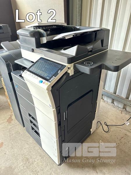 PHOTOCOPIER, KONICA MINOLTA BIZHUB C458 COLOUR DIGITAL, ADF, PRINTER USB & NETWORK PORTS, FINISHER (FS-536), SPARE TONER CARTRIDGES, 74,947 COLOUR & 70,124 B&W PAGES (TEST PAGE ATTACHED) S/N:A79M041011032
