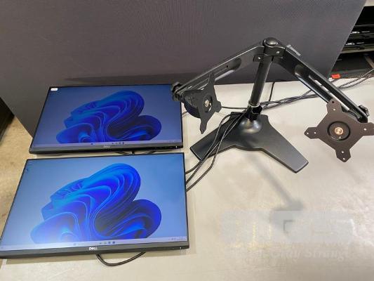 2 x MONITORS, DELL P2419H 23.8" IPS LED WIDESCREEN, HDMI, DISPLAYPORT, VGA (WITH CABLES) (NO HDMI CABLE) WITH FREESTANDING DUAL MONITOR STAND S/N:5618ZR2, 2W08ZR2