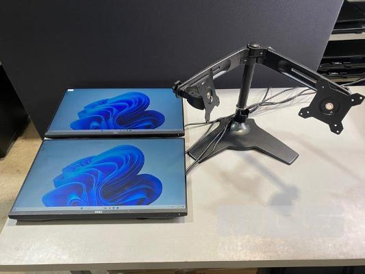 2 x MONITORS, DELL P2419H 23.8" IPS LED WIDESCREEN, HDMI, DISPLAYPORT, VGA (WITH CABLES) (NO HDMI CABLE) WITH FREESTANDING DUAL MONITOR STAND S/N:D615P33, FR05P33