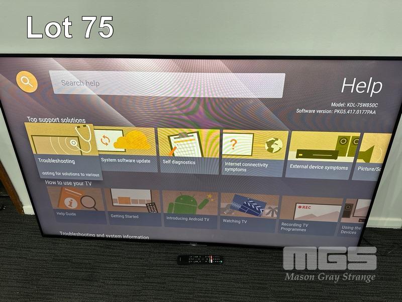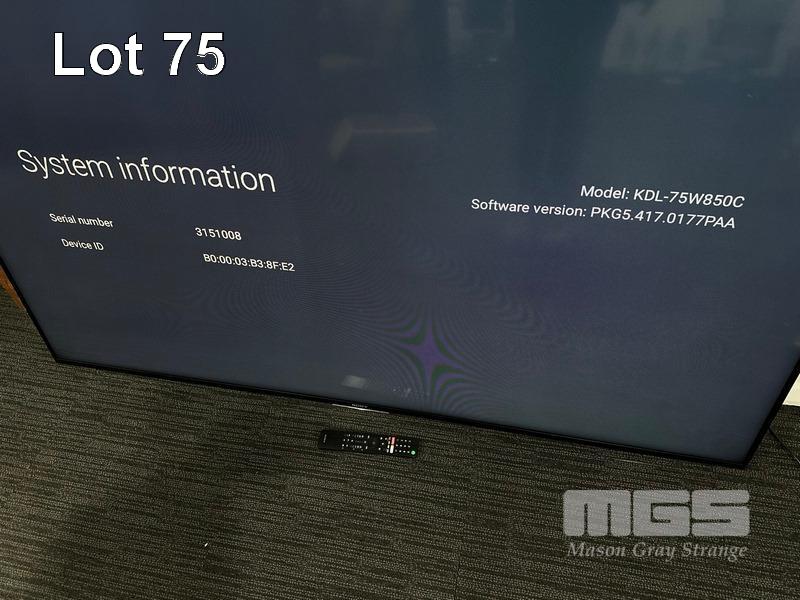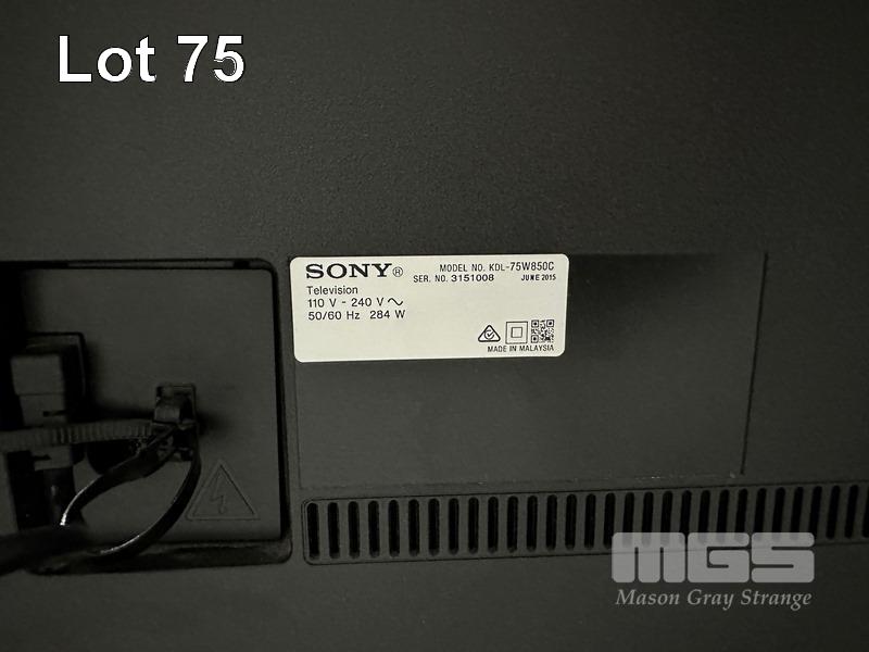 SONY BRAVIA 75" FULL HD SMART LED TV, KDL-75W850C WITH REMOTE (NO STAND) S/N:3151008