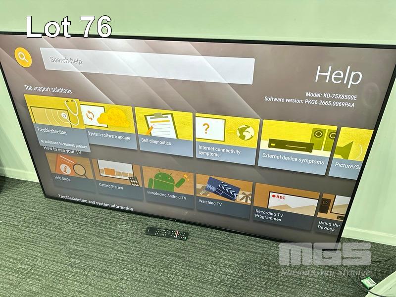 SONY BRAVIA 75" 4K SMART LED TV, KD-75X8500E WITH REMOTE (NO STAND) (NOTE: SCRATCHES ON SCREEN) S/N:6504445