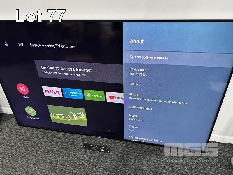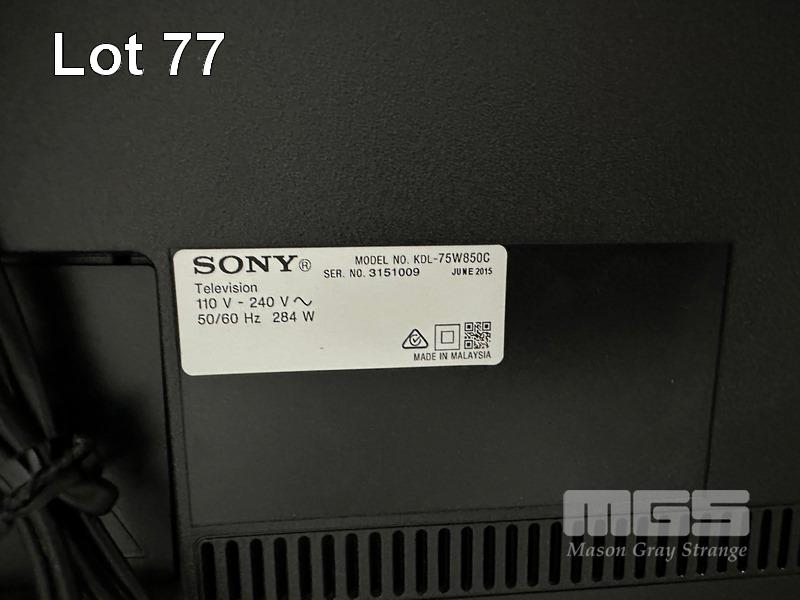 SONY BRAVIA 75" FULL HD SMART LED TV, KDL-75W850C WITH REMOTE (NO STAND) (NOTE: SCRATCHES ON SCREEN) S/N:3151009