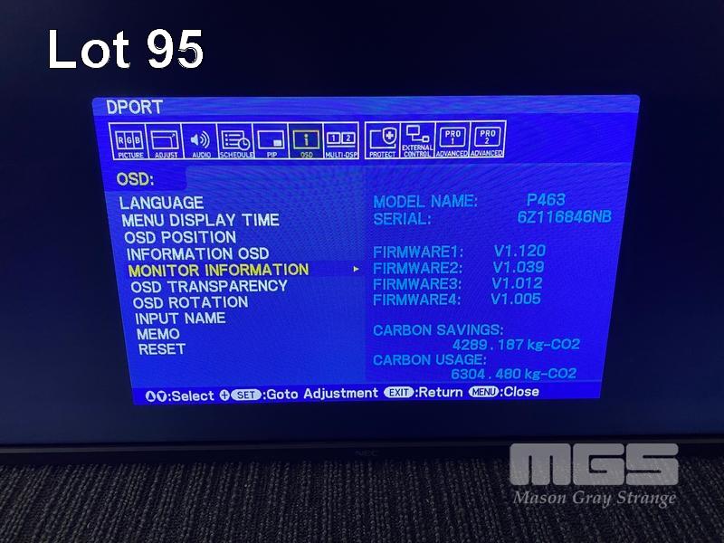 MONITOR, NEC MULTISYNC P463 46" COMMERCIAL LCD DISPLAY (NO REMOTE, NO STAND) S/N:6Z116846NB