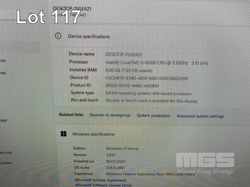 ALL-IN-ONE PC, DELL OPTIPLEX 7480, CORE i5 10500 (10TH GEN) @ 3.1GHz, 8GB DDR4 RAM, 512GB NVMe M.2 SSD, INBUILT 23.8" FHD WIDESCREEN (1920x1080), INTEL HD VIDEO, WEBCAM, 5 x USB, 1 x USB-C, Wi-Fi, BLUETOOTH, WINDOWS 11 HOME INSTALLED, KEYBOARD & MOUSE S/N:6KMWVD3