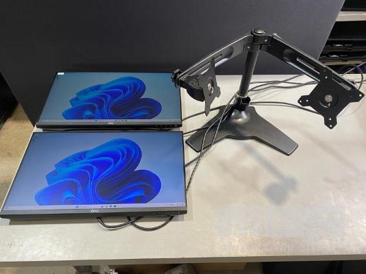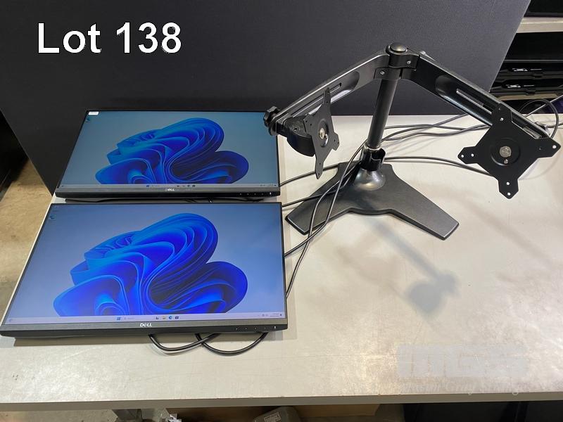 2 x MONITORS, DELL P2419H 23.8" IPS LED WIDESCREEN, HDMI, DISPLAYPORT, VGA (WITH CABLES) (NO HDMI CABLE) WITH FREESTANDING DUAL MONITOR STAND S/N:4R28ZR2, 4W08ZR2