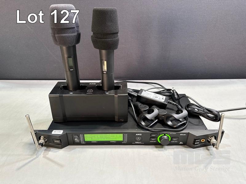 AKG DSR800 DIGITAL WIRELESS STATIONARY RECEIVER WITH 2 x AKG DHT800 HANDHELD MICROPHONES, 1 x AKG CU800 CHARGING UNIT & 1 x POWER SUPPLY S/N:V151001422