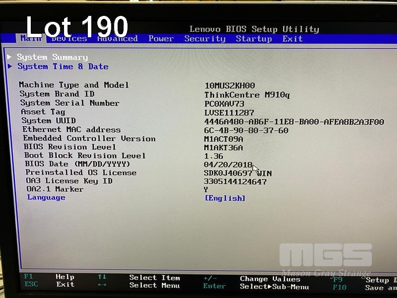 DESKTOP PC, LENOVO THINKCENTRE M910q TINY, CORE i5 7500T (7TH GEN) @ 2.7GHz, 8GB DDR4 RAM, 500GB SATA HDD, Wi-Fi, BLUETOOTH, WINDOWS 10 PRO INSTALLED & POWER SUPPLY (NO KEYBOARD, NO MOUSE) S/N:PC0XAV73