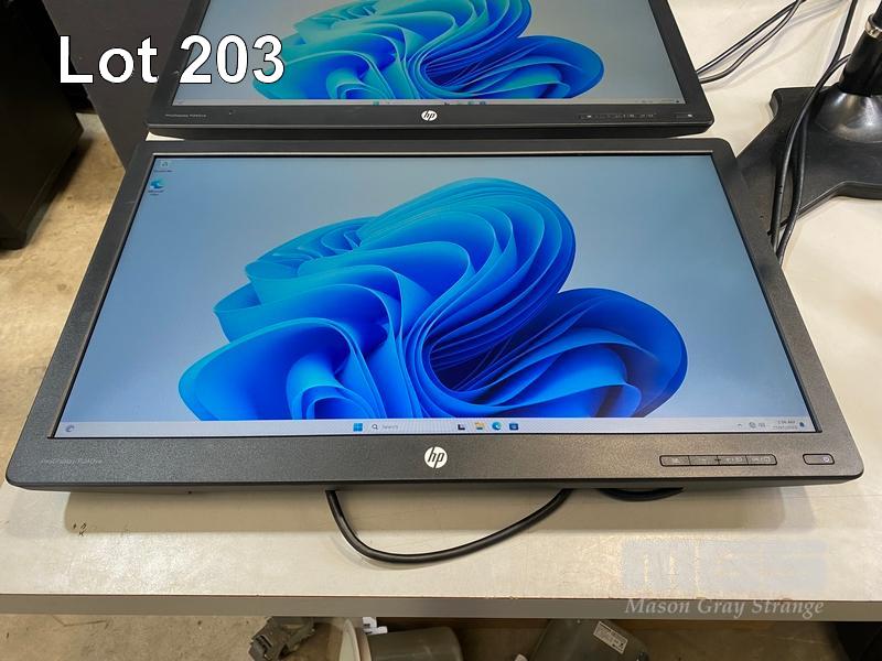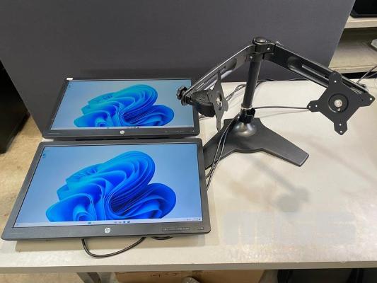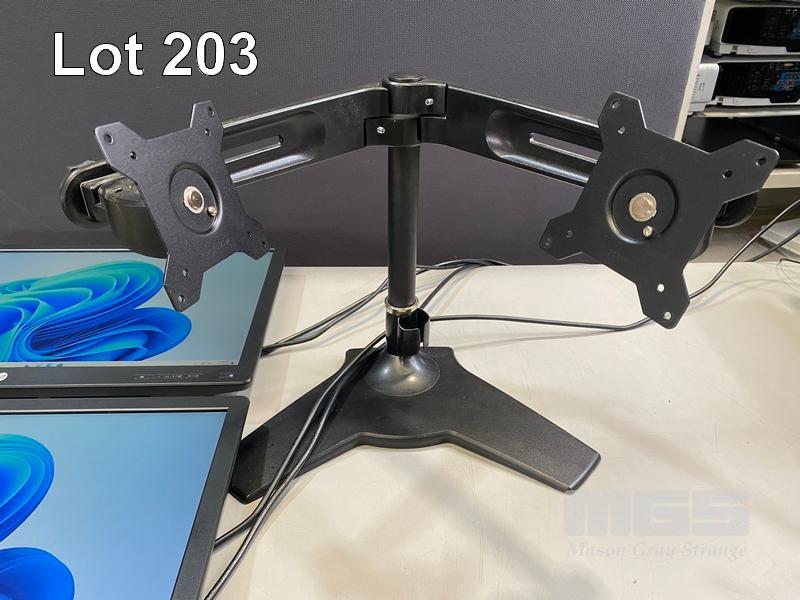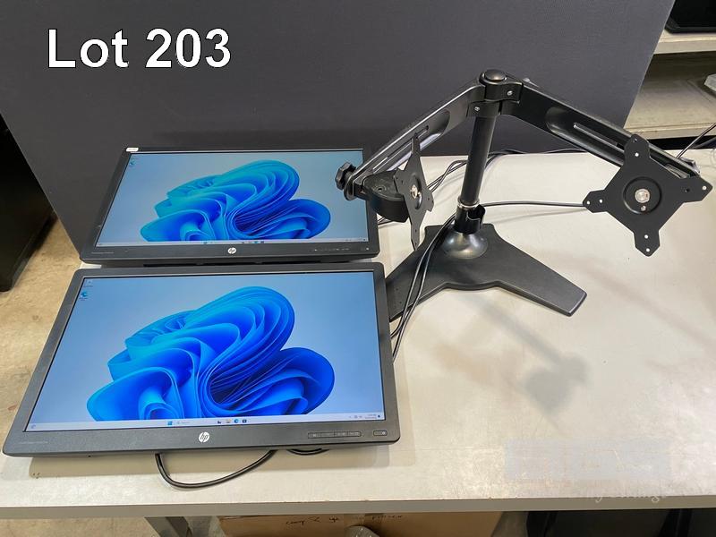2 x MONITORS, HP PRODISPLAY P240va 23.8" LED-BL LCD WIDESCREEN, HDMI, DISPLAYPORT, VGA (WITH CABLES) (NO HDMI CABLE) WITH FREESTANDING DUAL MONITOR STAND S/N:CNK82729N7, CNK82729GL