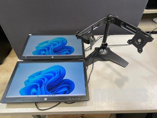 2 x MONITORS, HP PRODISPLAY P240va 23.8" LED-BL LCD WIDESCREEN, HDMI, DISPLAYPORT, VGA (WITH CABLES) (NO HDMI CABLE) WITH FREESTANDING DUAL MONITOR STAND S/N:CNK82729N2, CNK82729NM