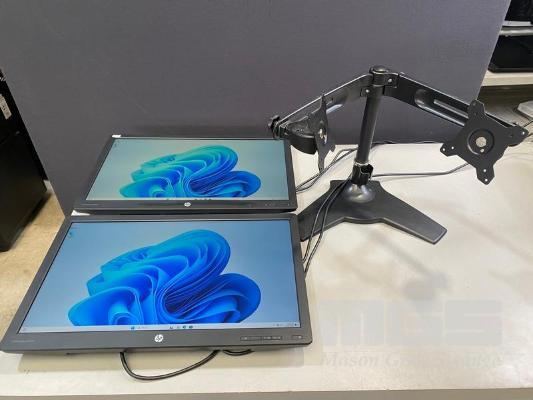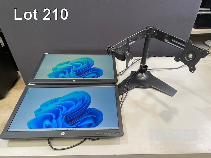 2 x MONITORS, HP PRODISPLAY P240va 23.8" LED-BL LCD WIDESCREEN, HDMI, DISPLAYPORT, VGA (WITH CABLES) (NO HDMI CABLE) WITH FREESTANDING DUAL MONITOR STAND S/N:CNK7200D7L, CNK7200D7K