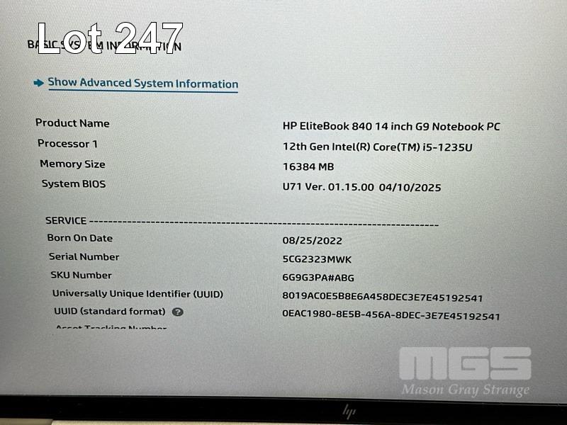 LAPTOP, HP ELITEBOOK 840 G9, CORE i5 1235U (12TH GEN) @ 1.3GHz, 16GB DDR4 RAM, 256GB NVMe M.2 SSD, 14" WIDESCREEN (1920x1080), INTEL UHD GRAPHICS, Wi-Fi, BLUETOOTH, WINDOWS 11 PRO INSTALLED, USB-C POWER SUPPLY & CARRY BAG S/N:5CG2323MWK