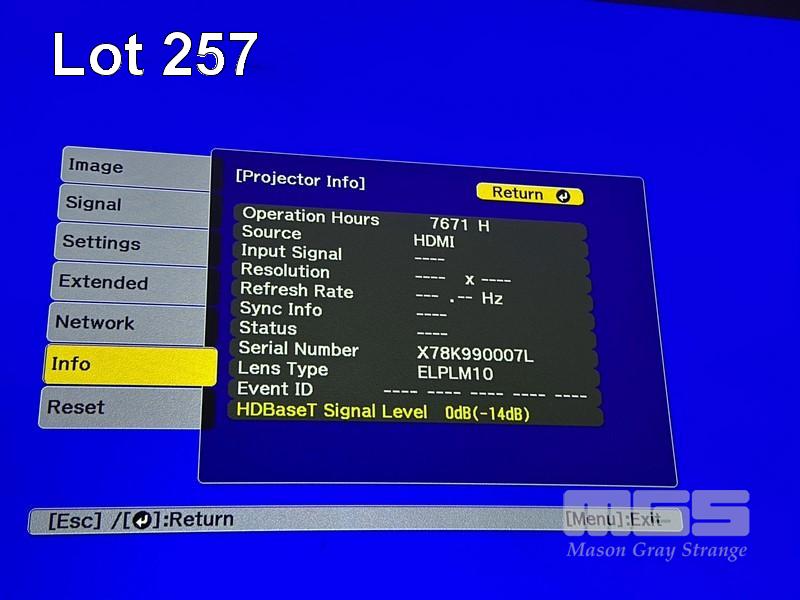 LASER PROJECTOR, EPSON EB-L1495U WUXGA 3LCD, 9,000 LUMENS, ELPLM10 LENS, 7,671 HOURS SHOWING WITH REMOTE S/N:X78K990007L