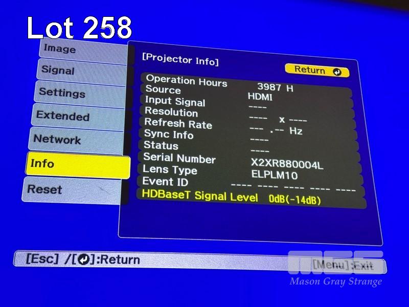 LASER PROJECTOR, EPSON EB-L1100U WUXGA 3LCD, 6,000 LUMENS, ELPLM10 LENS, 3,987 HOURS SHOWING WITH REMOTE S/N:X2XR880004L