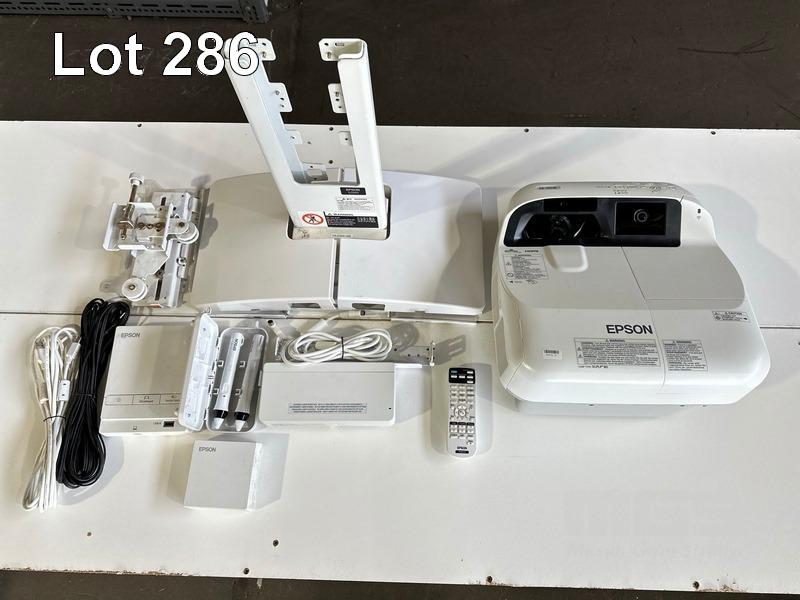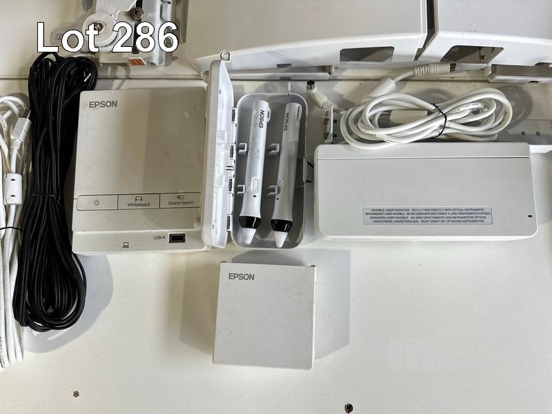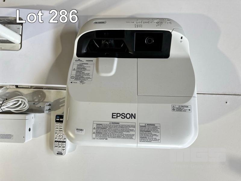 PROJECTOR, EPSON EB-595Wi ULTRA SHORT THROW, 3300 LUMENS, 1,557 NORMAL HOURS & 51 ECO HOURS SHOWING & REMOTE WITH BRACKET, CONTROL BOX, H599LCU TOUCH UNIT & INTERACTIVE PENS S/N:UHPF510330L