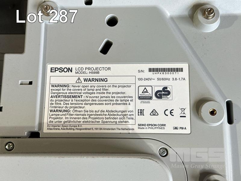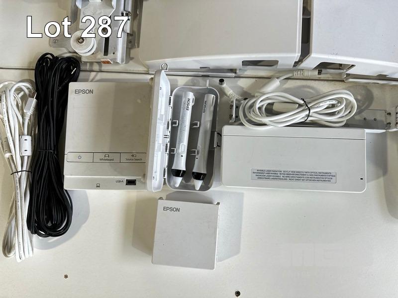 PROJECTOR, EPSON EB-595Wi ULTRA SHORT THROW, 3300 LUMENS, 1,493 NORMAL HOURS & 19 ECO HOURS SHOWING & REMOTE WITH BRACKET, CONTROL BOX, H599LCU TOUCH UNIT & INTERACTIVE PENS S/N:UHPK6300071