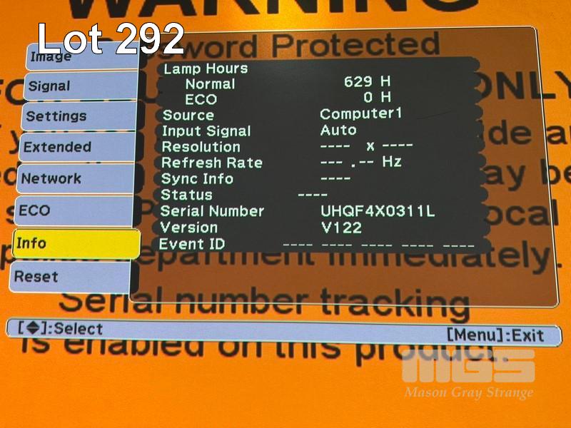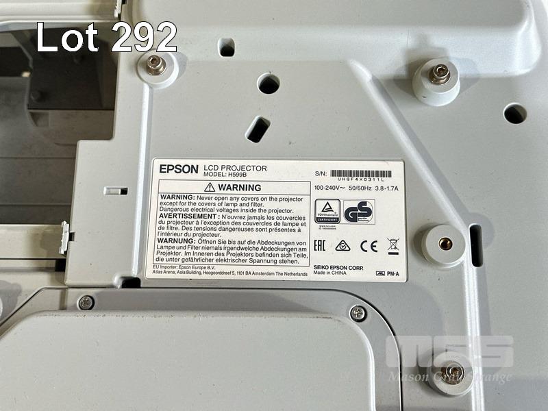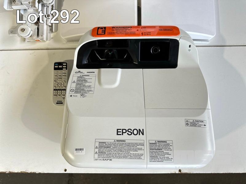 PROJECTOR, EPSON EB-595Wie ULTRA SHORT THROW, 3300 LUMENS, 629 NORMAL HOURS SHOWING & REMOTE WITH BRACKET S/N:UHQF4X0311L