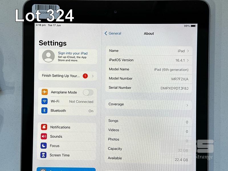 APPLE iPAD 6TH GEN, 32GB, Wi-Fi, SPACE GREY, MODEL MR7F2X/A, A1893 WITH CABLE & CHARGER (NOTE: MINOR SCRATCHES ON SCREEN) S/N:DMPXD9DTJF8J
