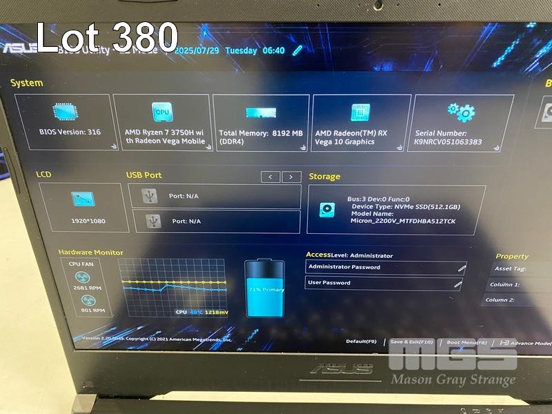 LAPTOP, ASUS TUF GAMING FX505DT, AMD RYZEN 7 3750H WITH RADEON VEGA MOBILE GFX @ 2.3GHz, 8GB DDR4 RAM, 512GB NVMe M.2 SSD, 15.6" WIDESCREEN (1920x1080), Wi-Fi, BLUETOOTH, WINDOWS 11 HOME INSTALLED & POWER SUPPLY S/N:K9NRCV051063383