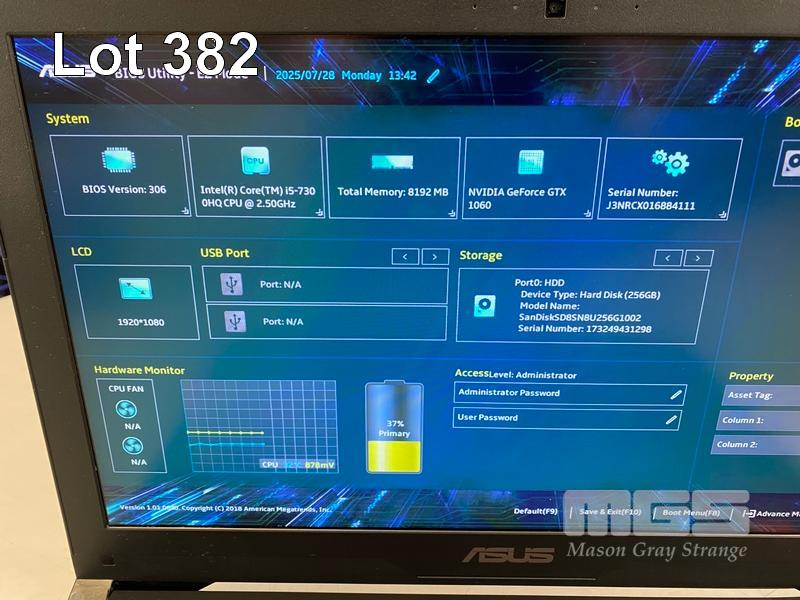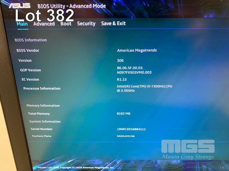 LAPTOP, ASUS FX503VM GAMING, CORE i5 7300HQ (7TH GEN) @ 2.5GHz, 8GB DDR4 RAM, 256GB M.2 SSD, 15.6" WIDESCREEN (1920x1080), 3GB NVIDIA GEFORCE GTX 1060 VIDEO, Wi-Fi, BLUETOOTH, WINDOWS 10 HOME INSTALLED & POWER SUPPLY S/N:J3NRCX016884111