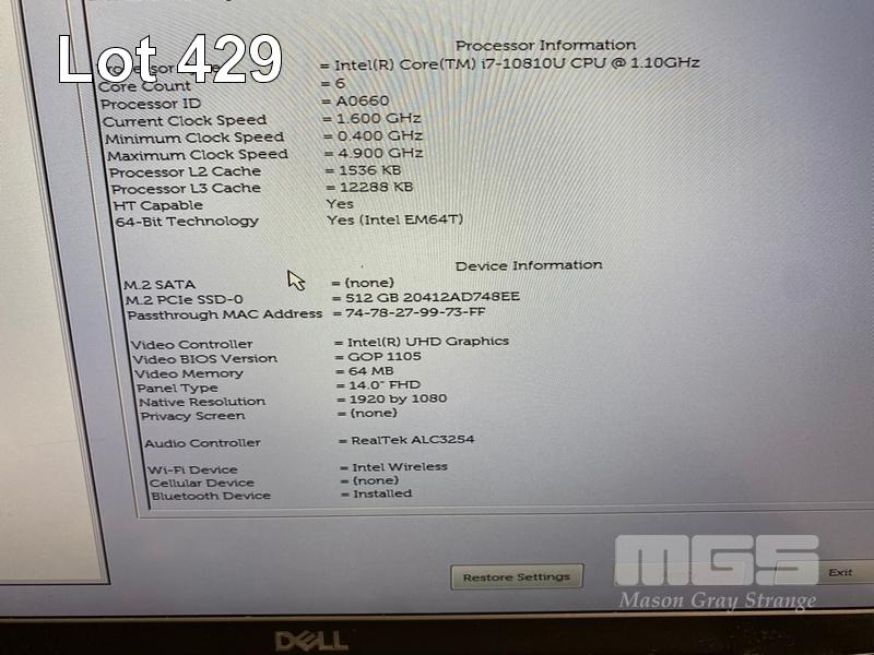 LAPTOP, DELL LATITUDE 7410, CORE i7 10810U (10TH GEN) @ 1.1GHz, 16GB DDR4 RAM, 512GB NVMe M.2 SSD, 14" WIDESCREEN (1920x1080), INTEL UHD GRAPHICS, Wi-Fi, BLUETOOTH, WINDOWS 11 HOME INSTALLED (NO USB-C POWER SUPPLY) (NOTE: POOR CONDITION, KEYBOARD WORN, BATTERY NOT HOLDING CHARGE, RUBBER PAD MISSING ON BOTTOM OF LAPTOP) S/N:BNWZN73