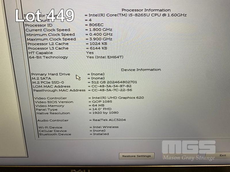 LAPTOP, DELL LATITUDE 5400, CORE i5 8265U (8TH GEN) @ 1.6GHz, 8GB DDR4 RAM, 512GB NVMe M.2 SSD, 14" WIDESCREEN (1920x1080), INTEL UHD GRAPHICS 620, Wi-Fi, BLUETOOTH, WINDOWS 11 HOME INSTALLED & POWER SUPPLY S/N:G05NN53
