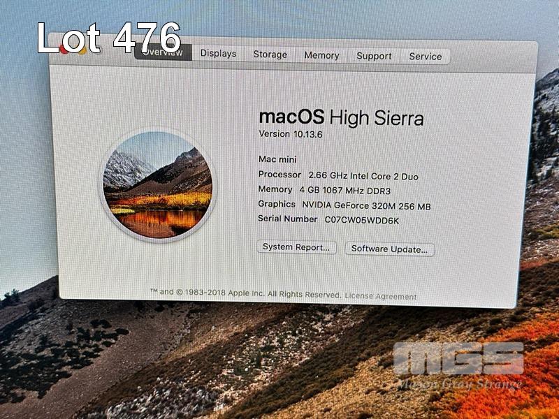 APPLE MAC MINI (A1347), CORE 2 DUO P8800 @ 2.66Hz, 4GB DDR3 RAM, 500GB SATA HDD, 256MB NVIDIA GEFORCE 320M VIDEO, Wi-Fi, BLUETOOTH, MAC OS 10.13 INSTALLED (NO KEYBOARD, NO MOUSE, NO CABLE) S/N:C07CW05WDD6K