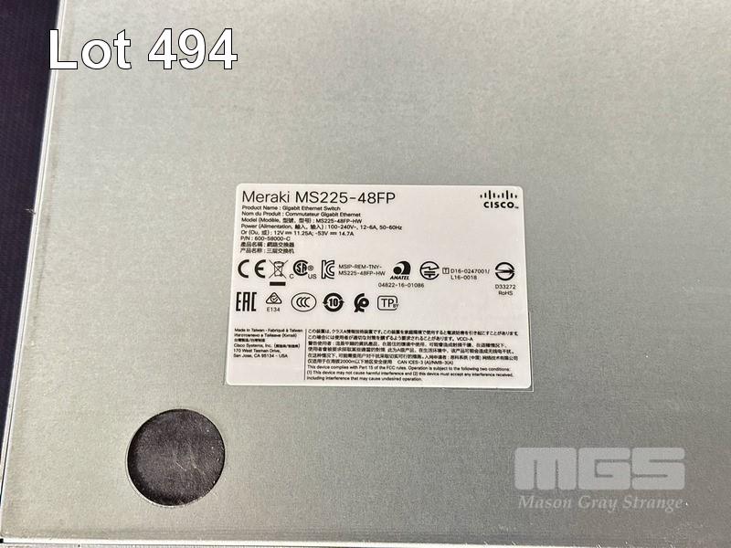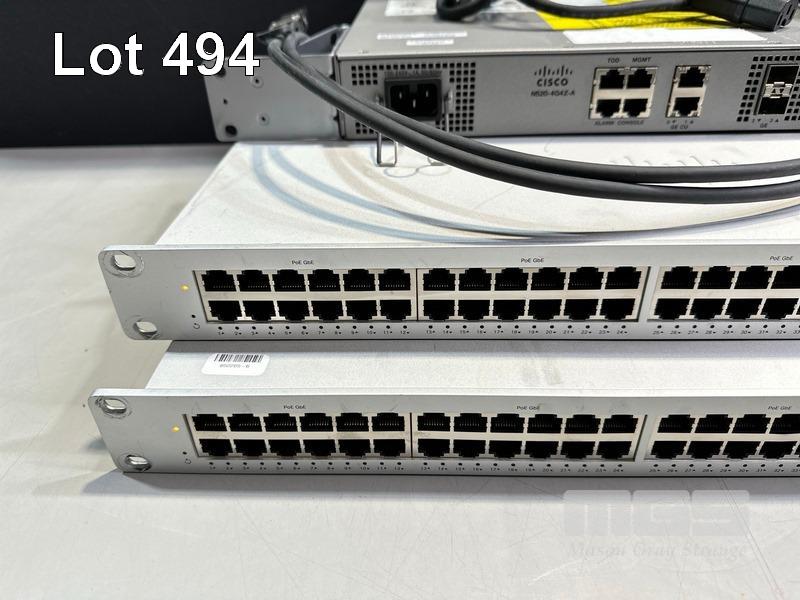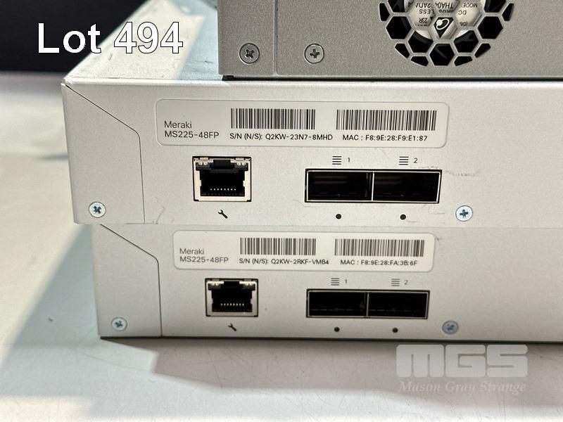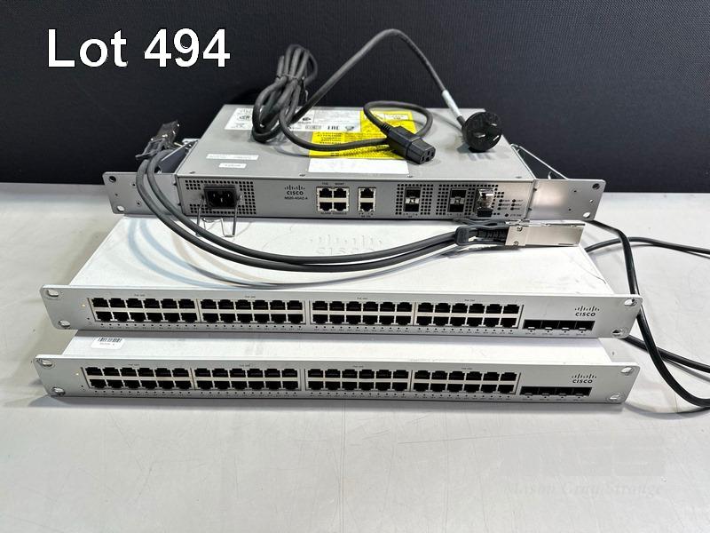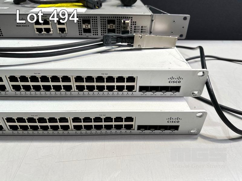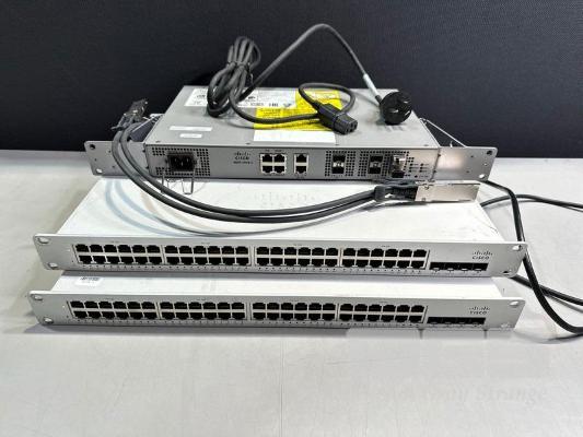 2 x CISCO MERAKI MS225-48FP 48-PORT STACKABLE SWITCHES WITH 600-22120-A STACKING CABLES 1 x CISCO N520-4G4Z-A NETWORK CONVERGENCE SYSTEM (NCS) WITH POWER CABLE S/N:Q2KW23N78MHD, Q2KW2RKFVMB4, FOC2621R1Z7