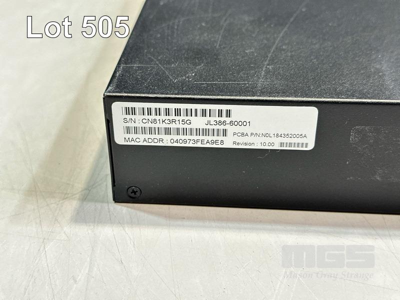 HPE OFFICECONNECT 1920S SERIES 48G 4SFP PPoE+ 370W NETWORK SWITCH, JL386A WITH NOTCH POWER CABLE S/N:CN81K3R15G