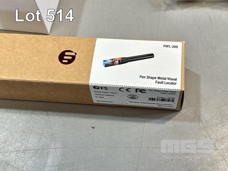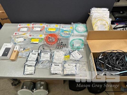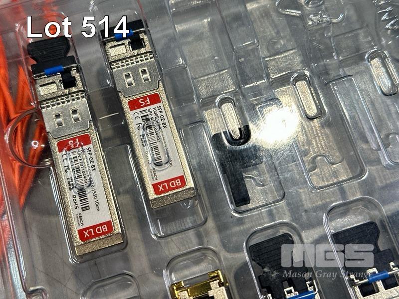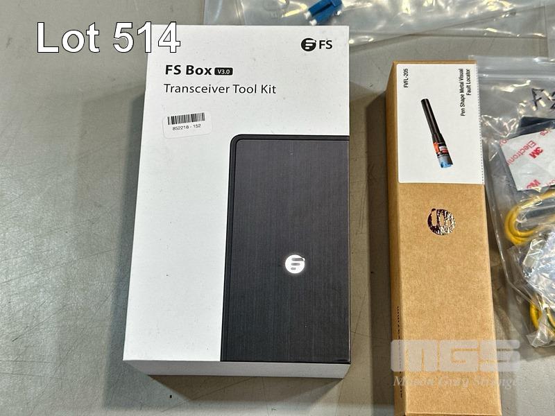 FS BOX TRANSCEIVER TOOL KIT, PEN SHAPE METAL VISUAL FAULT LOCATOR FVFL-205, QTY ASST FIBER OPTIC PATCH CABLES, QTY SFP-GE-BX TRANSCEIVER MODULES, QTY J4858C-TX TRANSCEIVER MODULES, QTY ASST 10GbE SFP+ CABLES