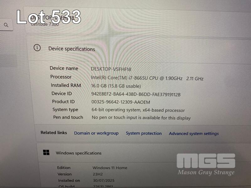 LAPTOP, DELL LATITUDE 7300, CORE i7 8665U (8TH GEN) @ 1.9GHz, 16GB DDR4 RAM, 512GB NVMe M.2 SSD, 13.3" WIDESCREEN (1920x1080), INTEL UHD GRAPHICS 620, Wi-Fi, BLUETOOTH, WINDOWS 11 HOME INSTALLED & POWER SUPPLY S/N:9VF2M13