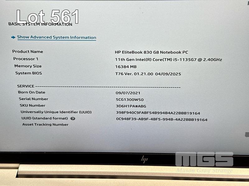 LAPTOP, HP ELITEBOOK 830 G8, CORE i5 1135G7 (11TH GEN) @ 2.4GHz, 16GB DDR4 RAM, 256GB NVMe M.2 SSD, 13.3" WIDESCREEN (1920x1080), INTEL IRIS Xe GRAPHICS, Wi-Fi, BLUETOOTH, WINDOWS 11 PRO INSTALLED & POWER SUPPLY (NOTE: DAMAGED CASING) S/N:5CG1300W50