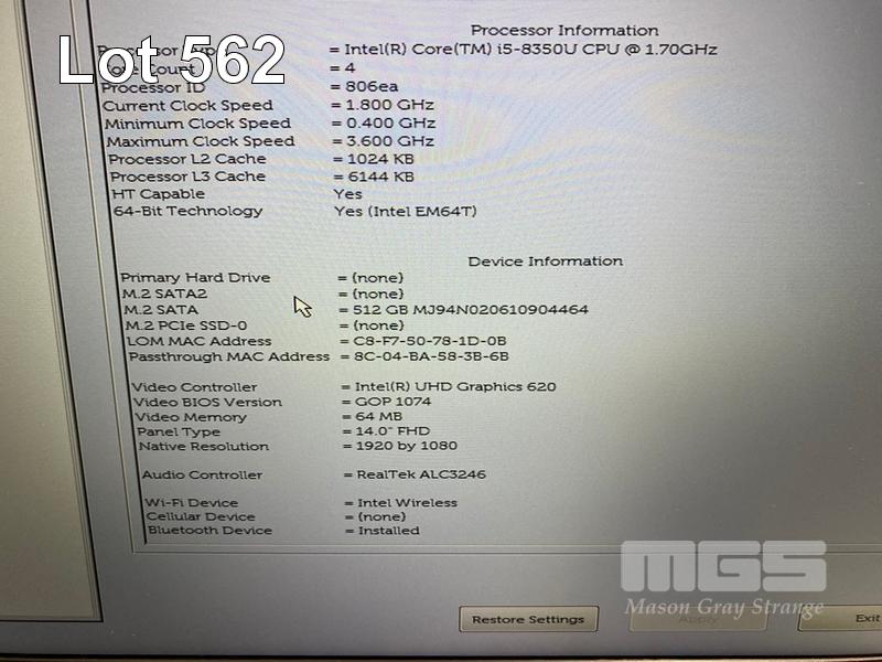 LAPTOP, DELL LATITUDE 5490, CORE i5 8350U (8TH GEN) @ 1.7GHz, 8GB DDR4 RAM, 512GB M.2 SSD, 14" WIDESCREEN (1920x1080), INTEL UHD GRAPHICS 620, Wi-Fi, BLUETOOTH, WINDOWS 11 HOME INSTALLED & POWER SUPPLY S/N:3912QV2