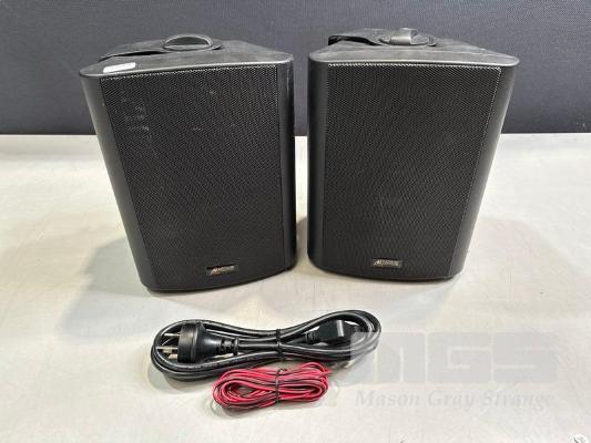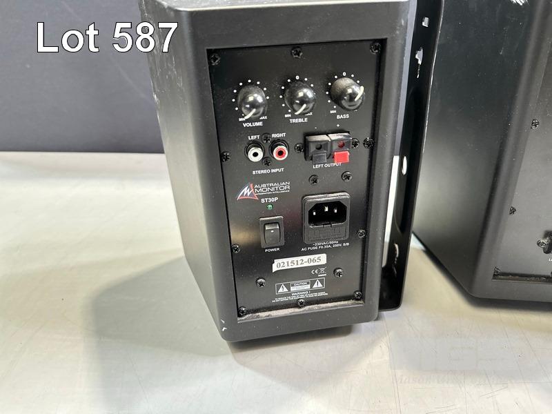 PAIR AUSTRALIAN MONITOR ST30P SPEAKERS, BLACK WITH CABLES