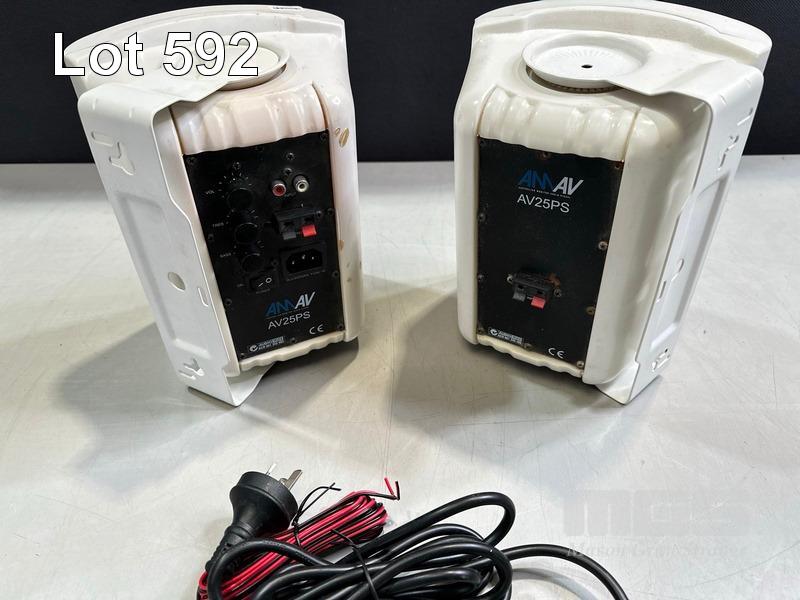 PAIR AUSTRALIAN MONITOR AV25PS SPEAKERS WITH CABLES