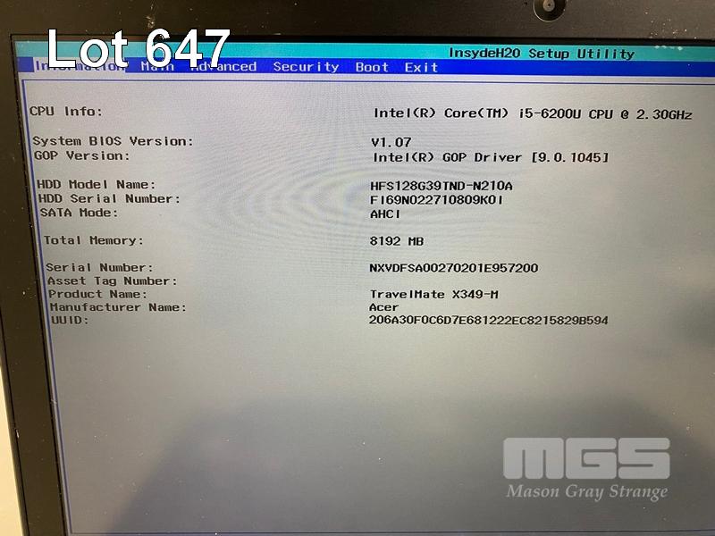LAPTOP, ACER TRAVELMATE X349-M, CORE i5 6200U (6TH GEN) @ 2.3GHz, 8GB DDR4 RAM, 128GB M.2 SSD, 14" WIDESCREEN (1920x1080), INTEL HD VIDEO, Wi-Fi, BLUETOOTH, WINDOWS 10 HOME INSTALLED (NO POWER SUPPLY) (NOTE: MARKS ON SCREEN, ENGRAVED BOTTOM OF CASING, BATTERY NOT CHARGING) S/N:70201E957200